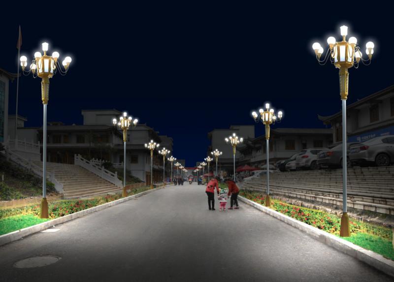 光源:金卤灯大功率节能灯或高压钠灯,照明出发点大,范围广,雾透过性强,照明均匀,寿命长,可以满足中华灯分散照明的要求。